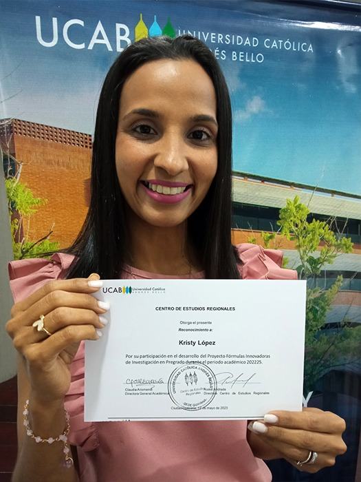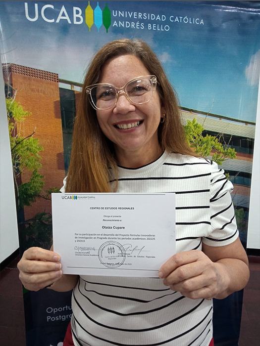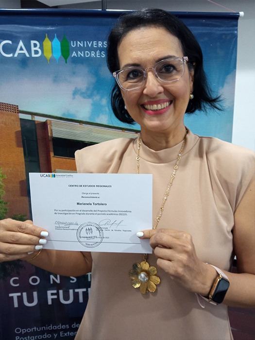 Como profesora que ha desarrollado Fórmulas Innovadoras de Investigación en sus clases de Compensación del Trabajo III, en el octavo semestre de Relaciones Industriales, manifestó que “los productos de las investigaciones han sido un trabajo desarrollado por los estudiantes, en un paso a paso con el acompañamiento que corresponde, y luego compartido con ellos en un trabajo final, como lo es la sistematización en un documento único que se ha publicado, lo que ha sido de gran significancia para los estudiantes, el ver sus nombres en una publicación de la UCAB; de eso se trata, porque ellos son el semillero de investigación de nuestra casa de estudios”.